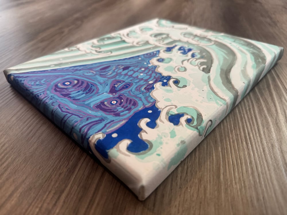 Tim Lehi “Creeping Death Wave” painting. Ink and watercolor on watercolor canvas. size 8” X 10” X 3/4”.