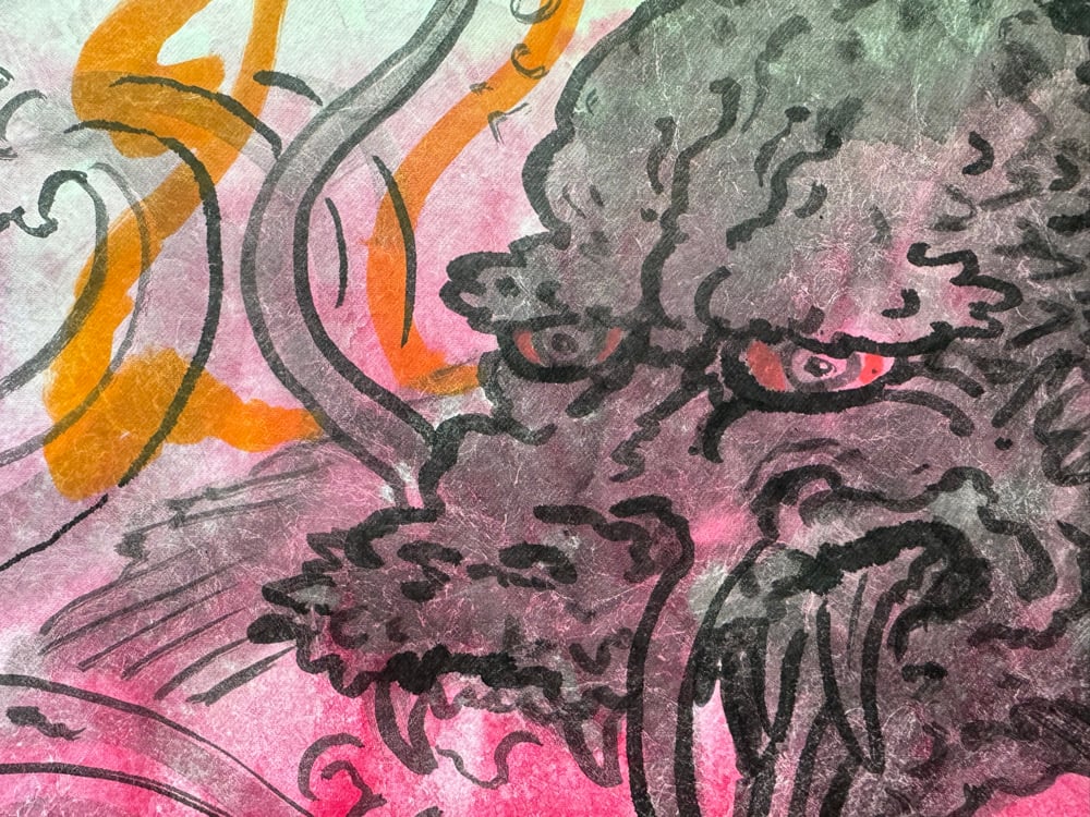 Tim Lehi “Koi Dragon” painting. Ink and liquid acrylic on tyvek. Size 30” x 18”.